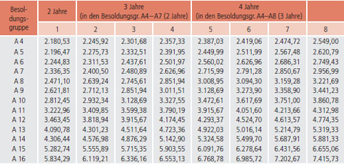 Die Gewerkschaften im Land Berlin drücken auf eine zügige Anpassung an das Besoldungsniveau anderer Länder. Zunächst ist es gelungen, die Besoldung rückwirkend zum 01.04.2019 um 4,3 Prozent zu erhöhen. Ebenfalls um 4,3 Prozent wird die Besoldung zum 01.02.2020 angehoben (die aktuellen Tabellen finden Sie auf diesen beiden gegenüberliegenden Seiten). Die dritte Anpassung soll schließlich zum 01.01.2021 erfolgen.