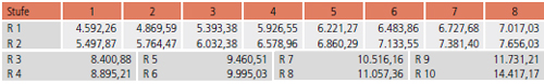 | R 1 | 4.720,84 | 5.005,94 | 5.544,39 | 6.092,49 | 6.395,47 | 6.665,41 | 6.916,06 | 7.213,51 |