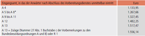 | Eingangsamt, in das der Anwärter nach Abschluss des Vorbereitungsdienstes unmittelbar eintritt |
