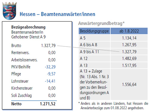 Bezüge für Beamtenanwärterinnen und Beamtenanwärter des Landes Hessen